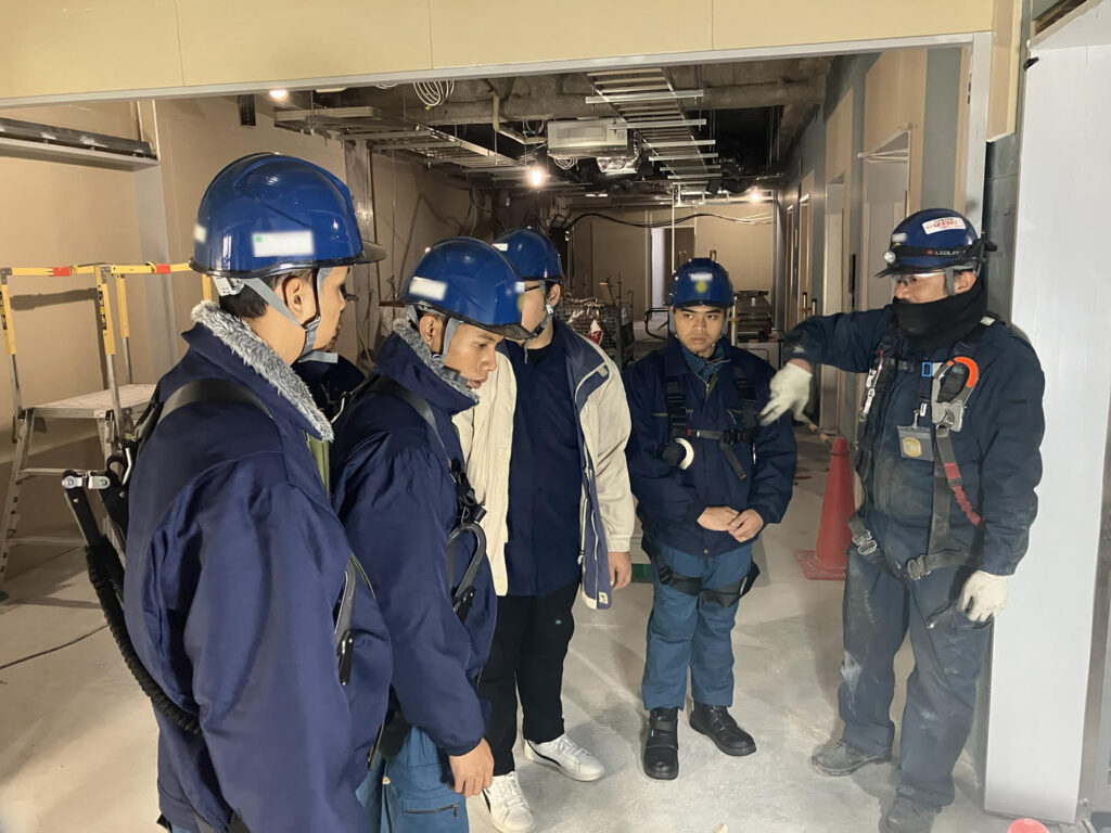 建設現場でエレベーターやエスカレーターの設置を行う新東施設では、2025年から新たに技能実習生を採用しました。
